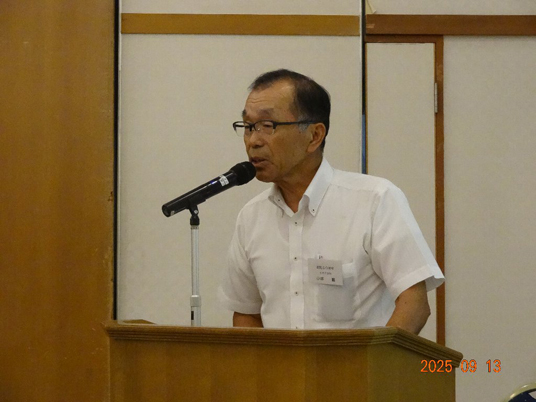 総会は芦澤佑亮(建都H27)の司会で行われ、中村啓七朗副支部長(土木S46)の開会のあいさつがあり、小澤 誠支部長(工化S39)の挨拶がありました。小澤支部長は孫の高校の先生から千葉工業大学が凄いと言われたエピソードを披露していただきました。その後、小澤支部長が議長となり、議事を進め小林巖幹事長(土木S50)から令和6年度事業報告・令和7年度事業計画が報告され、令和7年11月18日(火)第28回ゴルフコンペの参加者募集や新年会、春のゴルフコンペの事業計画が報告されました。また、令和6年度会計報告が奥秋茂樹会計担当(土木H4)からあり、会計監査の藤江富一(土木S44)から適切に処理されていることが報告され承認されました。令和7年度予算案についても奥秋茂樹(土木H4)から報告があり承認されました。