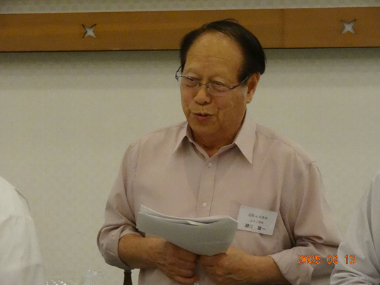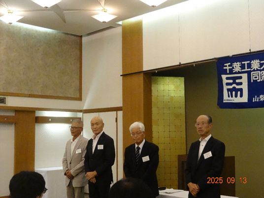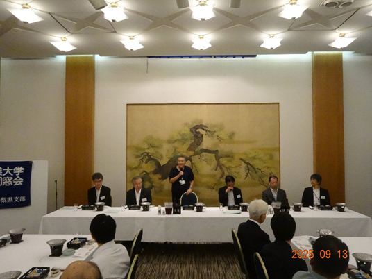 令和7年度の山梨県支部総会及び懇親会が令和7年9月13日(土)シャトレーゼホテル談路館で行われました。昨年より若干多い24人(大学の先生を含めると30人)の参加を頂きました。ただ、若者の参加が皆無に等しく卒業年代別では、令和世代が1名(2回目)、平成世代が11名(そのうち初参加者が1名)、昭和世代が12名(そのうち初参加者が2名)と超高齢化となっていて、寂しい状況でした。