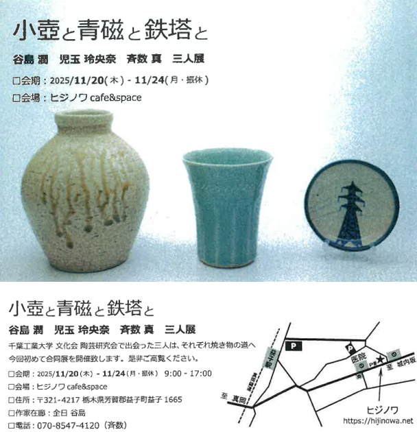 本学の卒業生で文化会「陶芸研究会」の三人が合同展を開催いたします